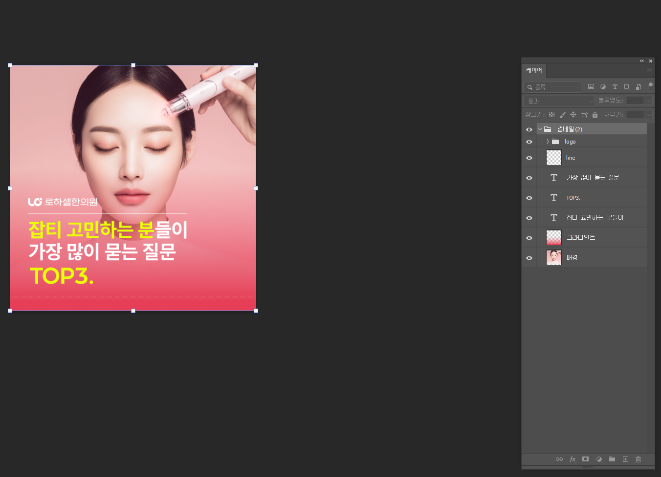 이 플러그인의 가장 큰 장점은 레이어가 이미지처럼 병합되지 않고 살아있다는 점이다. 로고, 버튼, 텍스트, 아이콘 등 다양한 구성 요소들이 각각의 레이어로 분리되어 있어 수정하기 간편하다. 특히 사내 디자이너가 포토샵만 사용할 수 있는 환경이라면 이런 방식의 전달은 오히려 효율적인 커뮤니케이션 수단이 될 수 있다.