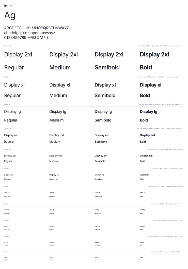 - Heading : Display, H1, H2, H3 (제목, 섹션 타이틀) 등