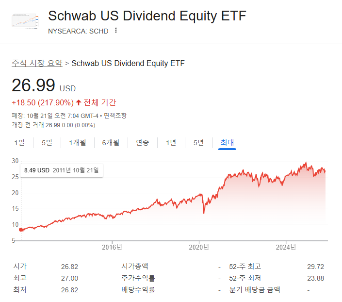 - SCHD → 안정적인 배당과 장기 복리 목적