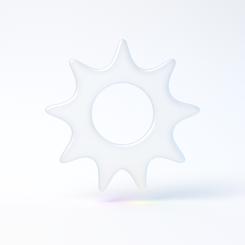 부드러운 흰 배경 위에 떠 있는 3D 유리[아이콘명] 아이콘. 반투명 서리(frosted) 질감, 하단에 아주 은은한 무지개 굴절 반사, 매끈한 모서리, 깊이를 위한 내부 그림자, 미니멀하고 모던한 애플 스타일, 화면 중앙 구도, 부드러운 주변광, 노이즈/텍스처 없음, 매우 깔끔한 미학. 1024x1024 정사각, (가능하다면) 투명 PNG로 내보내기.