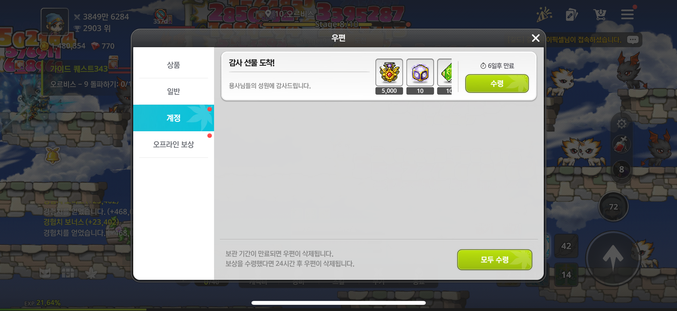 여기서 회원코드 + 쿠폰코드를 입력하면 보상은 게임 우편함으로 들어옵니다.
