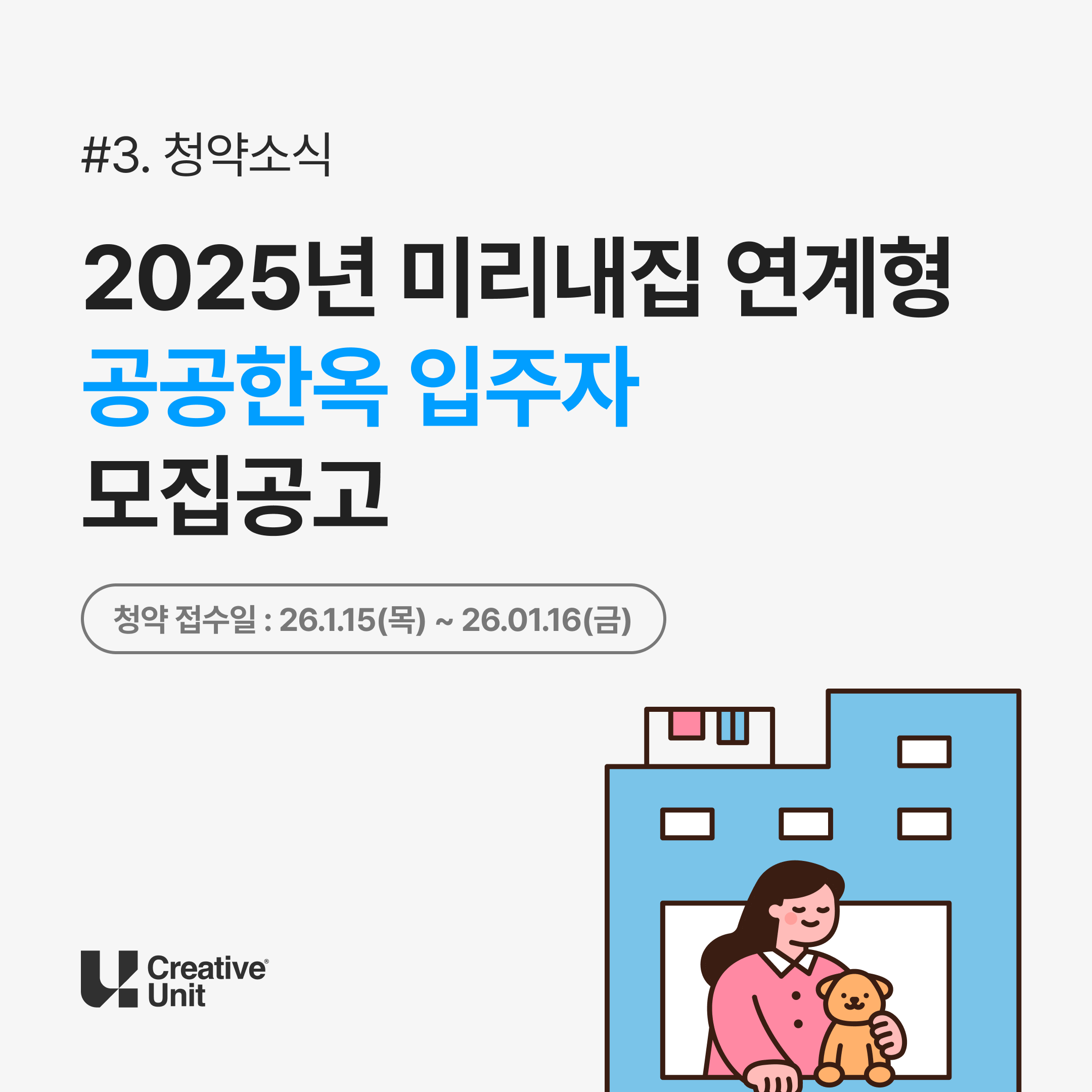 공급 물량은 적지만, 주거 단계가 명확하게 설계된 정책형 주택이라는 점에서 의미가 있는 공고입니다.