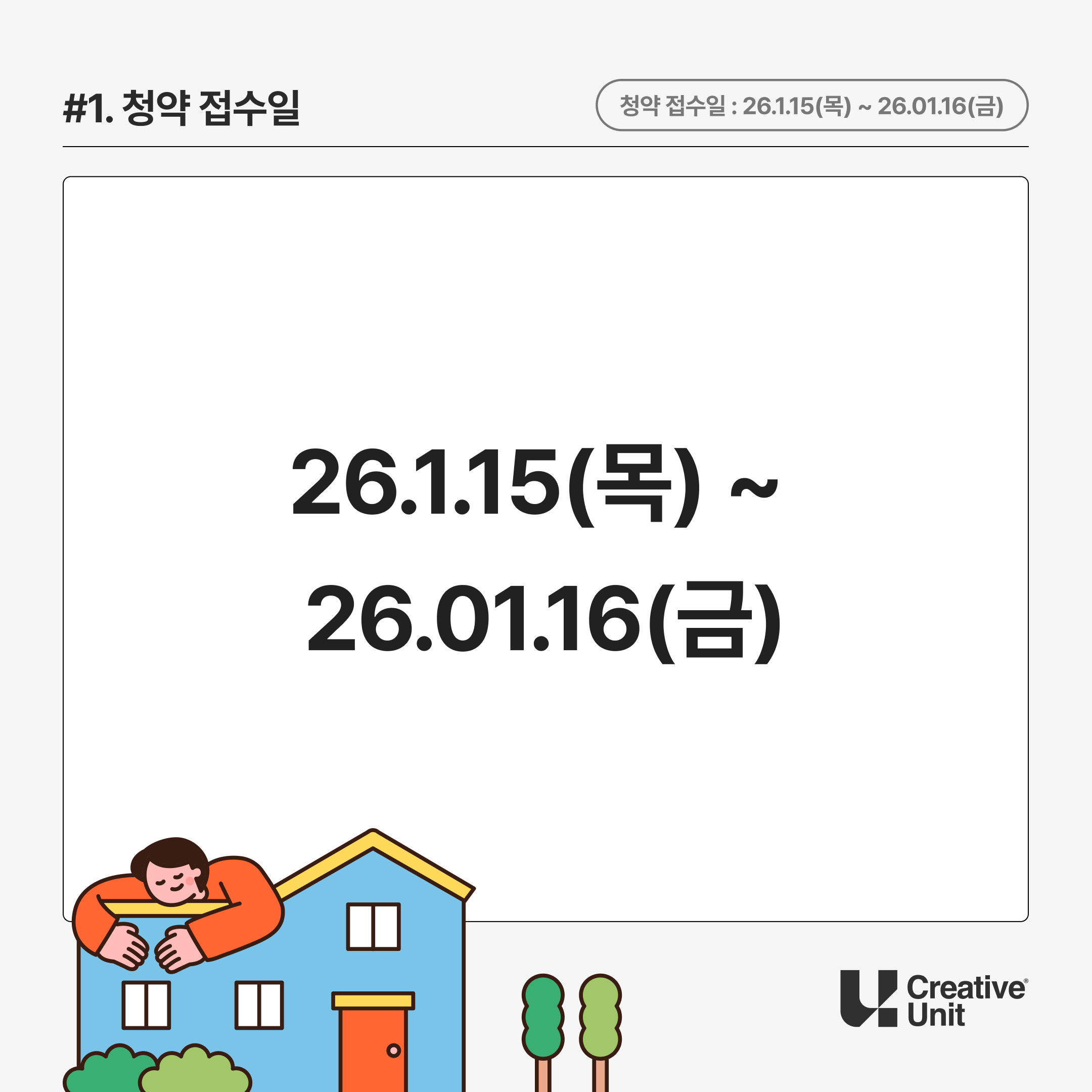 | 청약 접수 | 2026. 1. 15.(목) 10:00 ~ 1. 16.(금) 17:00 |