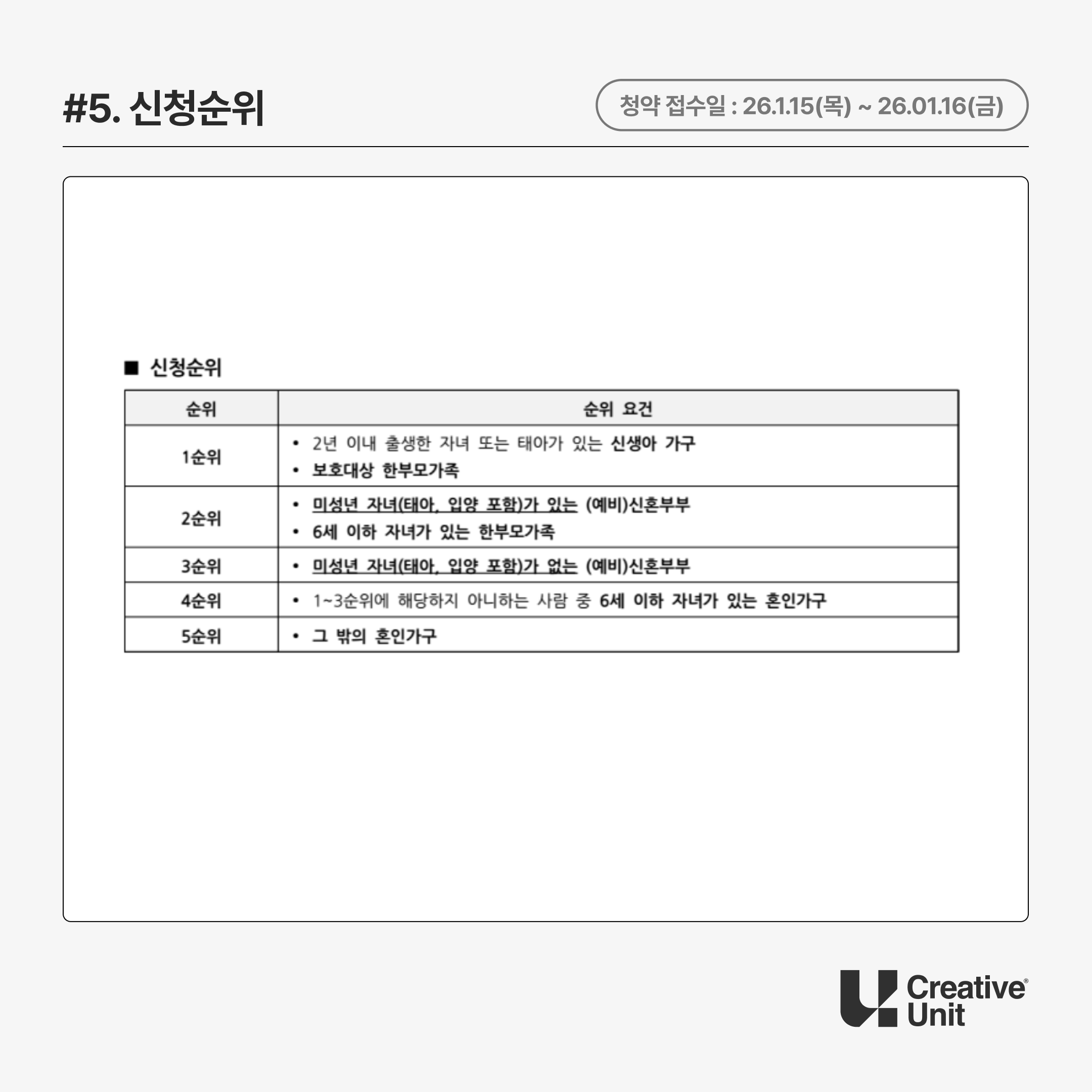 | 2순위 | 미성년 자녀가 있는 (예비)신혼부부 |