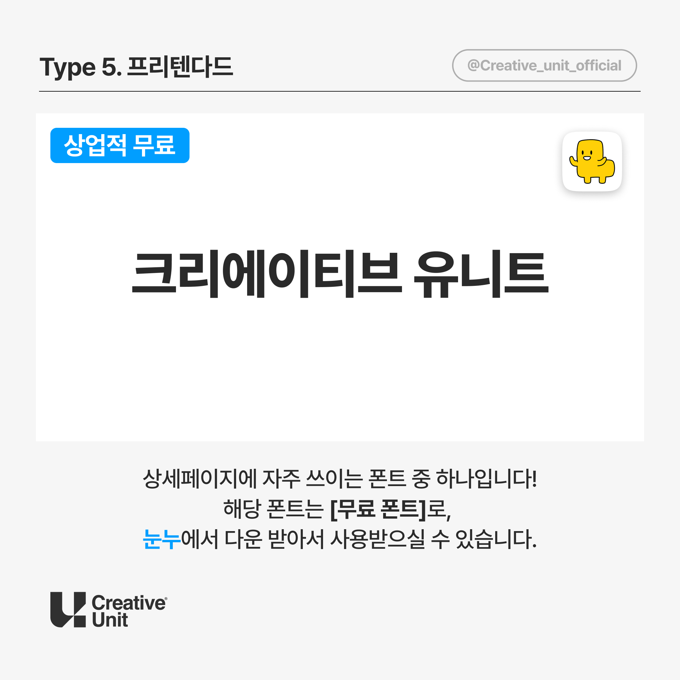 프리텐다드는 모던하고 심플한 느낌을 주는 폰트로, 다양한 디자인에 적합합니다. 이 폰트는 특히 블로그 포스트, 제품 설명 페이지, 간결한 웹사이트 디자인 등에 어울립니다. 가독성이 높고 직관적인 느낌을 주기 때문에 긴 텍스트에도 적합하며, 사용자가 쉽게 읽을 수 있도록 돕습니다. 눈누에서 무료로 다운로드 할 수 있으며, 상업적 사용이 가능하여 다양한 프로젝트에 활용할 수 있습니다.