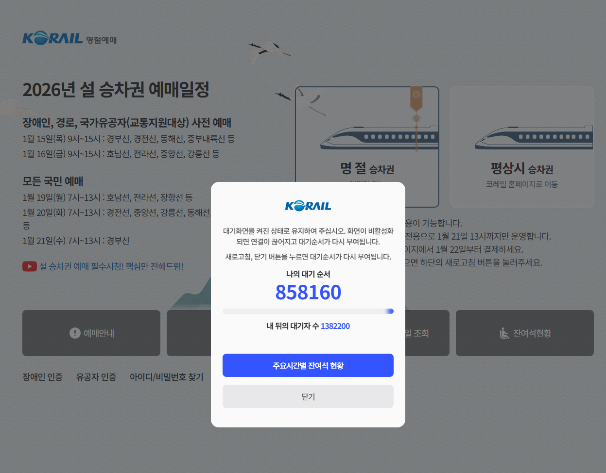 제발 코레일 서버증설을 하던지 열차를 늘려주던지.